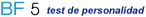 Saber másEl test de personalidad BF5 evalúa los principales rasgos de la personalidad, basándose en el reconocido modelo psicológico "Big Five" (extraversión, equilibrio emocional, meticulosidad, apertura, conciencia de los demás). BF5 es un test psicologico de corta duración, particularmente apreciado por las ETT's e instituciones.